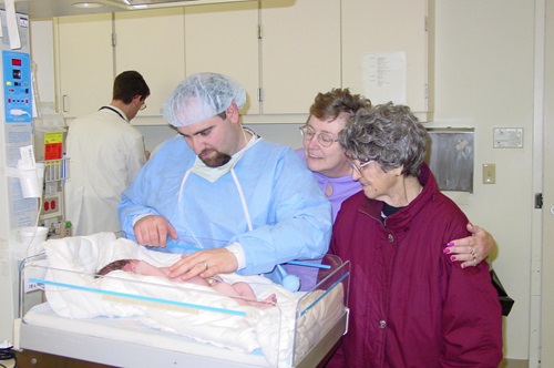 My mom could not wait for her first grandchild. She was over the moon when he was born. Outside of me, my mom and my then mother in law were the first to see him. I was walking with a nurse and my son down the hall and they spied me.