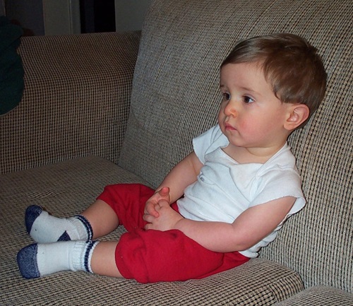 The above had to be taken just before or just after his first birthday. It has always been one of my favorite photos of him. He was totally zoned in on the TV. If I had to guess, he is probably watching Elmo here.