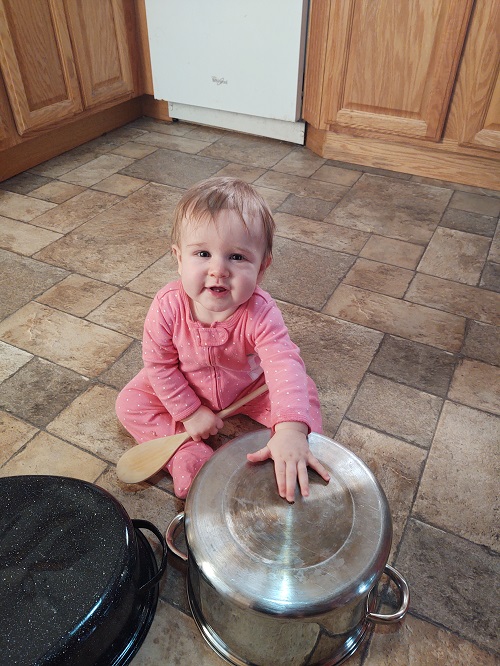 Kids grow up too fast! I already have a hard time believing that Ella is 8 months old! In my opinion, let the noise ring out! Bang on those pots and pans, baby girl!! It is music to mommy and daddy’s ears! We will enjoy every concert you perform.