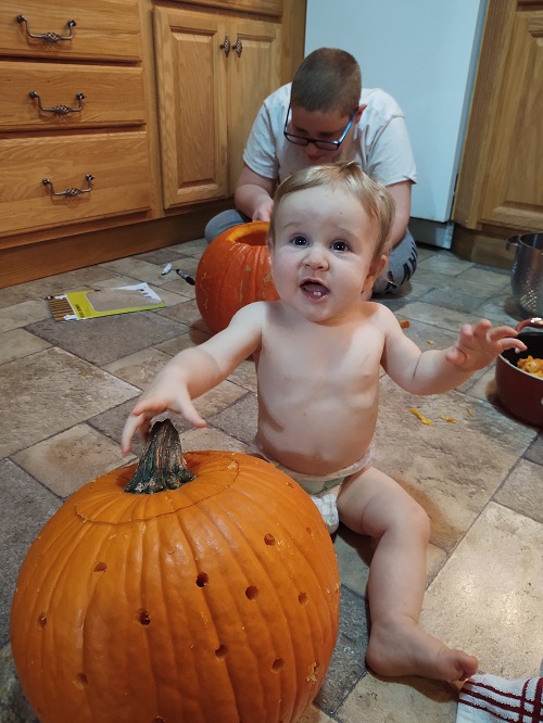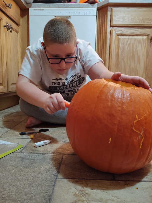 We then came home and it was pumpkin carving time! We went to the orchard last weekend. We picked pumpkins and didn’t get the chance to carve them, so we did it this weekend.