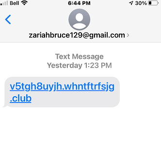 Tonight, within a span of 2 two hours, I have received about 8 text messages from various Gmail accounts. It is obvious that it is a scam or something that will harm your phone. It literally comes from a Gmail address and all the text contains is a link for you to click that is just a bunch of characters…. here is a picture I found that is similar to the texts I got tonight: