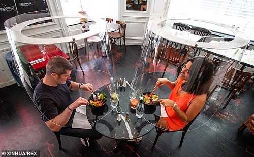 I’d hate to think that we may eventually do what they are doing in the UK. Did you see this? They want to put in social distancing “lamp shades” over tables for people to eat at!