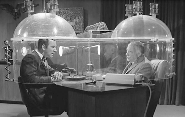 I mean, look at that thing! How can anyone enjoy a meal under that thing?? It’s like the friggin’ Cone of Silence from Get Smart!