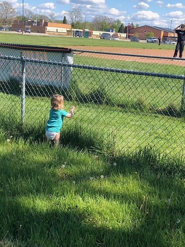 Three years ago, Sam bought me a zero turn mower. I absolutely love it. One of the things I love to do is mow the grass. I always do my neighbor next door’s grass when I can because all they have is a push mower and their yard is about as big as ours. Anyway, Sam sent me this picture of Ella watching the baseball players at the school behind our house this week.