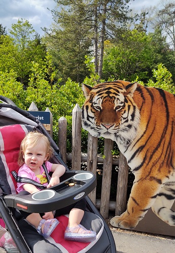 Every so often, we’d take Ella out of her stroller and tried to get her to walk with us. We tried holding her hand, but it wasn’t gonna happen. As soon as her feet hit the pavement, she was off like a shot! She was running everywhere. She was so excited to see other kids and other people. She just wanted to roam around! We got our exercise in chasing her around the zoo!