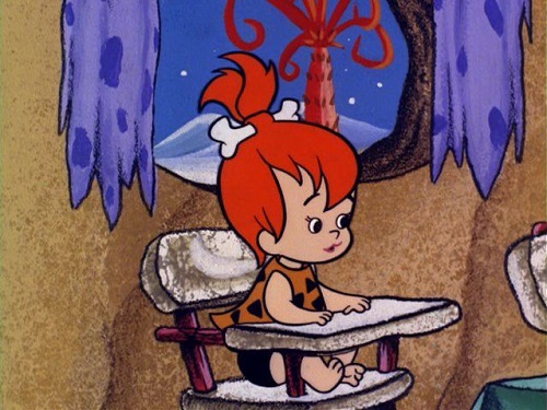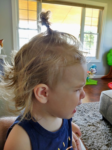 It wasn’t long after Ella’s hair started to grow that Sam put her in what I call “the Pebbles pigtail.” Remember Pebbles Flintstone? She had that one pigtail on the top of her head (held in place by a bone).