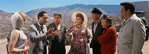 All these motorists would have to do is call someone close by to look for the money, right? As a matter of fact, in the film Ethel Merman’s character calls her son (Dick Shawn) to tell him about the money because he lives close by. However, the son is so dumb and doesn’t listen to her and gets in his car and drives toward her instead of to the money.