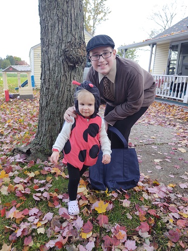 Anyway, my second born son came over for Halloween weekend. I picked him up on Saturday and he stayed Sunday night to trick or treat. He brought a bag with two or three costume ideas. He decided to go as “an old man.” As he trick or treated, he told people who asked that he was “my dad when he was younger!” That got quite a few laughs.