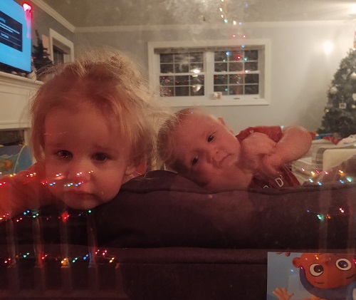Yesterday, before work, she came to the window, and Sam held up her brother so I could see both of them. I’m not going to lie, I started to tear up. I hate leaving for work. I miss my family when I am away. I was able to snap a picture of them before I left…