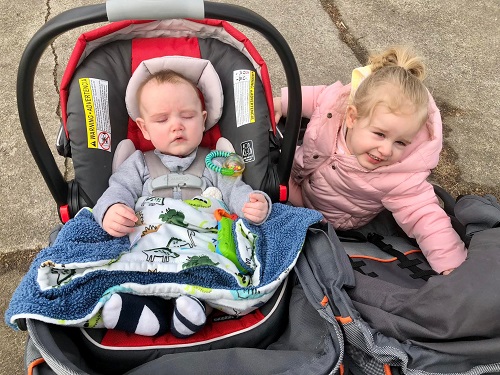 Earlier today, while I slept, Sam actually was able to get out the double stroller and she took her first run of the season. Ella already loves talking walks, but this was Andrew’s first jog through the neighborhood. Ella told me when I got up that she got to see her “puppy friend” (an old bassett hound we see on our walks).