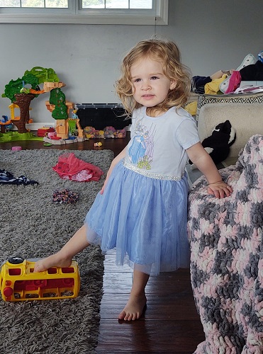 Nana stopped by with some clothes she got for the kids on day and found Ella some “Princess Dresses.” She puts one on and then takes it off so she can put the other one on. I’m not sure what she was doing when I snapped this picture, but I love it. I can’t wait to be able to dress up for a daddy daughter dance!