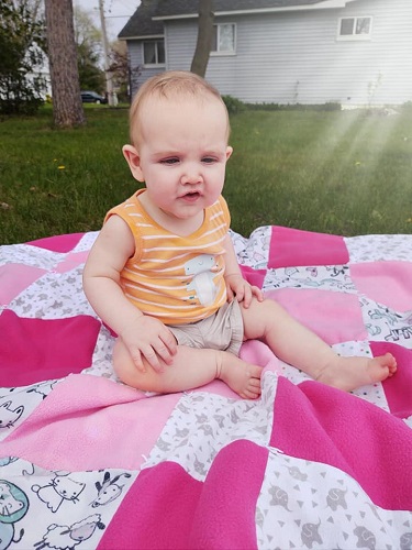Andrew turned 7 months old this week. He’s been crawling all over the place and is doing everything he can to stand up. He will pull himself up with the help of couch cushions, toys, pillows, you name it. He is able to stand for 30 seconds at a time, but then usually falls. It drives us crazy. Case in point: