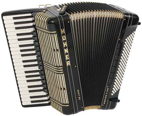 Through a complex construction of bellows and reeds, the accordion (also known as a concertina) produces its mournful timbre when air is forced over the reeds. While the accordion accompanies traditional polka music, the instrument has found its way into many classical and modern works of music.