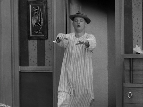 Art Carney was the perfect second banana. The play between him and Gleason is classic. In one episode Norton’s sleepwalking becomes a waking nightmare for Ralph. Ralph can’t get any sleep because he’s been asked to keep his pal from wandering off on late-night strolls around the neighborhood.