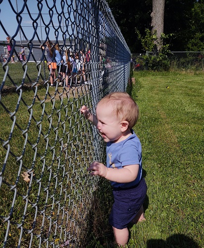 Both kids absolutely loved watching the kids play. Ella said hi to all the kids sitting on the bench and they were very nice to her. I think Andrew got the biggest kick out of it though. His smile as he stood against the fence was priceless.