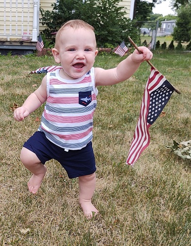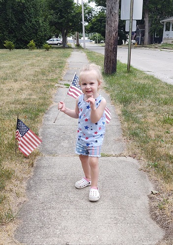 Sam had looked back at her Facebook memories and there was a very cute picture of Ella walking down the sidewalk with a flag in her hand. We tried to recreate it with her this year, and then had AJ try it, too.