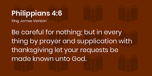 Careful in the KJV means “anxious or nervous”. Don’t be nervous or anxious about anything. Instead, in EVERY THING – and I believe every thing means every thing – go to God. He knows the outcome before we do. The key is to take things to Him and TRUST that He’s got it.