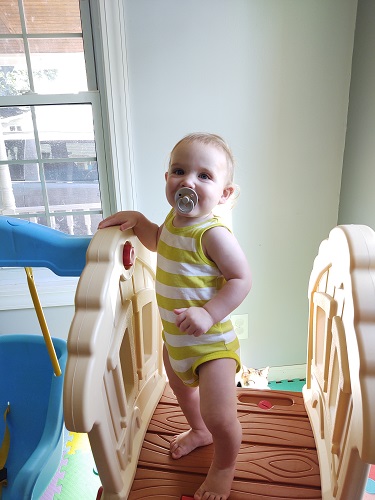 He truly has no fear. Today alone, he busted open his lip three times. None of those were from falling off the slide! He just tripped over stuff and fell on his face. I swear if we have to go to urgent care again, they will have to put in a window just for him.