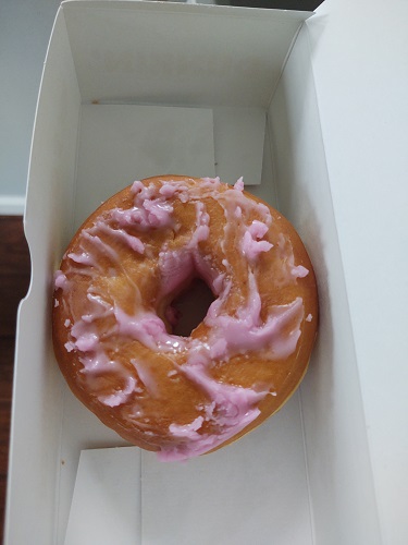 She gets a diaper change and it is time for breakfast. Somedays we eat eggs, others waffles, another day pancakes, and sometimes a smorgasbord of fruits and other things. Sam usually arrives home around breakfast time. Today she brought donuts for them. Ella loves pink dipped donuts, not that she ever eats the donut. She loves the frosting, though.