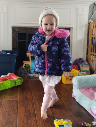 Comedy continues to ensue with Ella. Today she grabbed her winter coat and winter hat and asked to wear them. She had me help zip up the coat and said, “I’m already for winter and then asked to watch Frozen.