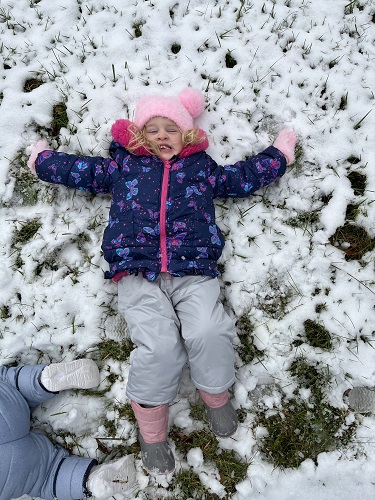 You wouldn’t know that Ella didn’t want to put her snow pants on by looking at this picture! She would have been more than happy to just go out with no coat on.