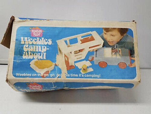 1. I zoomed in and it looks like Jodi is handing you some kind of purple alligator puppet. There’s some type of camper play set behind. Can’t read it though – maybe little people or weebles???