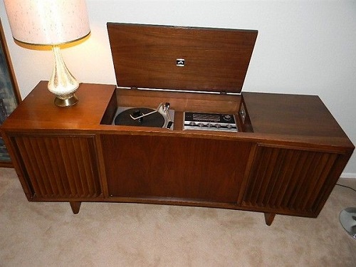 Next, it takes me right back to my grandma’s living room. Where the Christmas tree is, my grandpa’s rocking chair was usually there. Next to it, or on the wall next to it (which was a half wall as I recall) was where my grandpa kept his cabinet phonograph.
