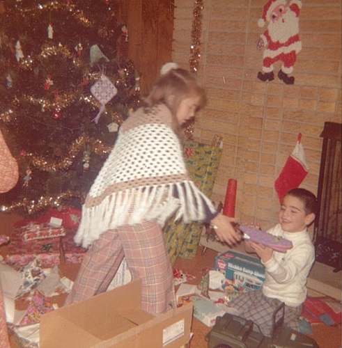 I love the mess of open boxes and wrapping paper all over the place in the picture. It is a bit too blurry to tell what some of the toys in boxes are, but that army jeep was probably my gift. This may have been the year I got a GI Joe Doll. The GI Joe came with a small hand grenade. This must have been years before anyone worried about kids choking on things, because it was quite small. It was so small that my brother stuck it in his nose and it got stuck! I know that required a trip to the ER to have it removed! The more I think about it, he may have stuck it in his ear, I don’t know.