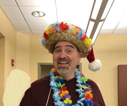 I used to have a sombrero in my DJ stuff and looked for a picture of me in it. I had no luck. However, I did find this photo from a work Christmas party which is close enough …