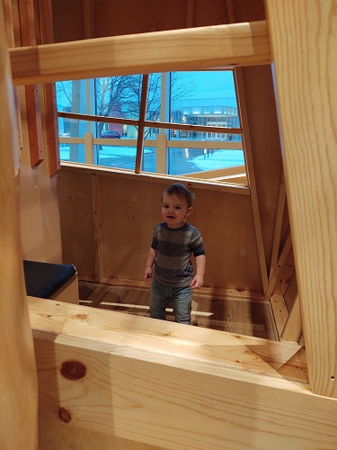 Another new addition to the museum is a HUGE tree house. Both kids played in it, but Ella loved climbing up to the top!
