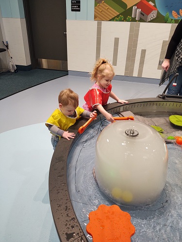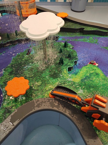 The water room was long with a TON of things to do. In the above picture, the water in front of the kids has smoke under it. When you turn the orange thing in front of that, the water turns off and the smoke rises. It’s actually very cool.