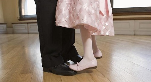 Every little girl remembers dancing with her Daddy – her feet atop his. My father didn’t dance except for that…(BTW – re: corsage. Yes absolutely but make it a wrist corsage. A pin-on corsage will be too bulky for her and for her dress.)