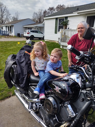 Before my brother in law left, the kids thought it was cool to sit on his motorcycle.
