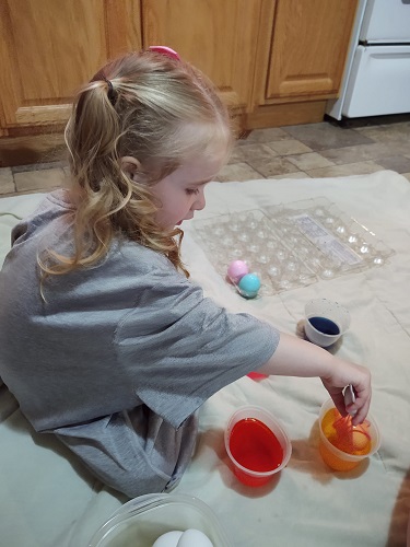 Both kids fell asleep on the way home. All that outside running around must have really tuckered them out. It was still sort of early and we want to color eggs when we got home. This was “fun.”