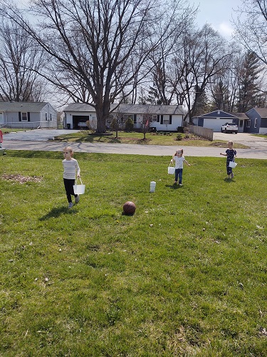 When we got there, many of the family were already there. Ella is always excited when she gets to be with her cousins. It didn’t take long for them to head outside for the Easter egg hunt.