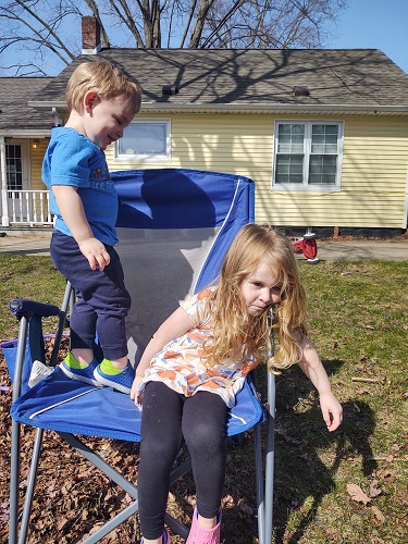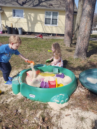 The weather today was nicer, too. Warmer! It was a no brainer to get outside today. The kids spent lots of time in the sandbox…