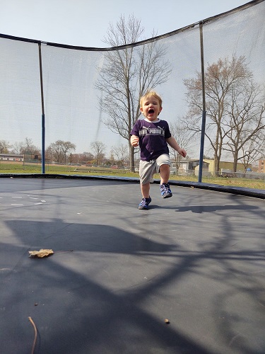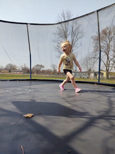 Yesterday was nice, too. Sam and I have decided to get rid of the trampoline. We haven’t said anything to the kids yet, but I let them get on it yesterday for a sorta last hurrah. Watching them play on it, I am almost sad to get rid of it.