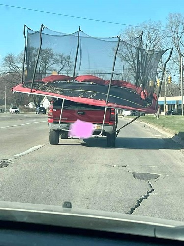 Speaking of trampolines – our local police Facebook page posted one of the funniest pictures I’ve seen in a while. This was tooling around Flint this morning ….