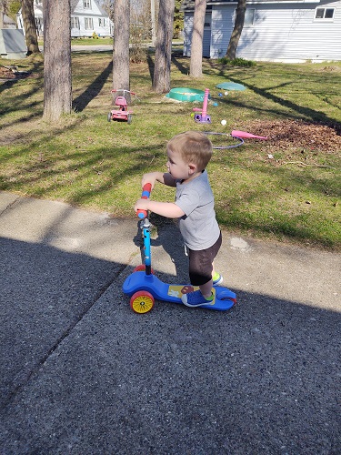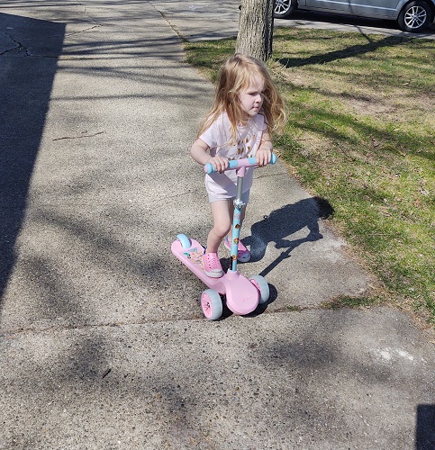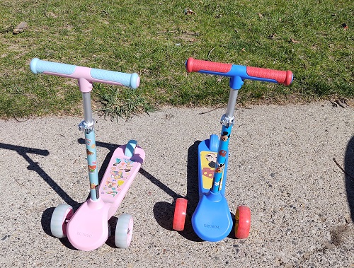 Sam went to the store today and saw that the had scooters on sale. These were the ones with two wheels in the front. She couldn’t pass up the deal and grabbed one for each kid.