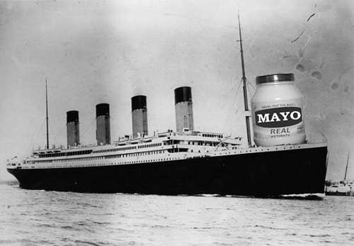 A little known fact is that back in 1912, Hellmann’s mayonnaise was manufactured in England. In fact, the Titanic was carrying 12,000 jars of the condiment scheduled for delivery in Vera Cruz, Mexico, which was to be the next port of call for the great ship after its stop in New York. This would have been the largest single shipment of mayonnaise ever delivered to Mexico but as we know, the great ship did not make it to New York.