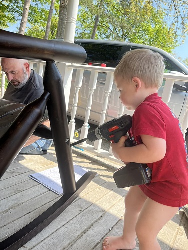 Andrew was all about trying to help me out. He wants to help SO bad. He kept bringing me pieces I didn’t need yet and pulling sockets from my socket wrench box. I look forward to the day when I can actually sit and build something with him and have him understand what we are doing.