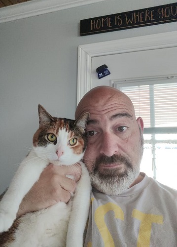 Maizey has lived with us for about 3 or 4 years. Originally, she was supposed to be my wife’s cat, but I think she stays by me more. When I go to bed, she jumps up and wants me to pet her. She will often jump up on my lap on mornings I get up before the kids. I will have a cup of coffee next to me, a book or my phone, and Maizey purring away.