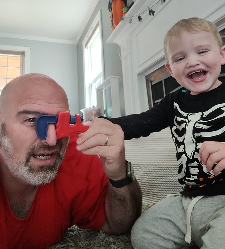 My dad sent him a tool box earlier this week. It had some cool tools in it and he was loving it! Without seeing one Three Stooges movie, he’s already showing me he’s going to love them.