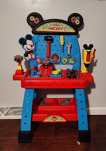When I came home Tuesday, I put together his birthday present so he could get it first thing in the morning. It’s a cool Mickey Mouse Tool Bench.