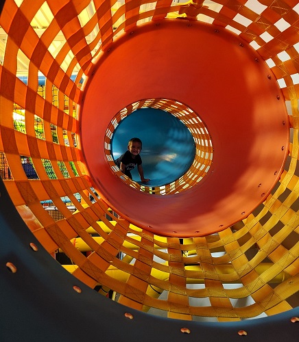 Sam’s coworkers told her about a cool place north of us. It’s like a big McDonald’s Play Place. Slides, zip lines, and more. He was in his glory going through the tunnels.