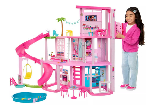 We decided to go a little smaller and got her the Barbie three story townhouse… which has an elevator!