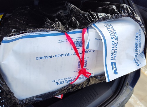 She wanted to be sure the secret was not revealed to Ella, so she grabbed a few USPS envelopes and covered the end of the box that was showing so that there was no way Ella could see what it was!
