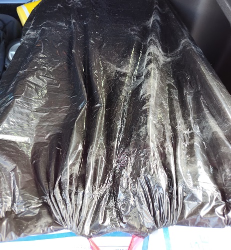 She found a garbage bag and said she thought maybe she could fit it in the bag. It just fit, but she said it wouldn’t close at the top of the bag.