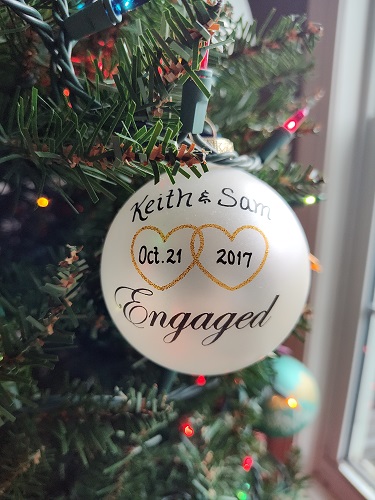 Sam and I were just friends when she bought her house.  Soon after, we began dating and fell in love.  She changed my life and I couldn’t imagine life without her.  I proposed Sweetest Day weekend while in a horse drawn carriage in Frankenmuth. She said yes less than a mile or so from Bronner’s! That year’s “event” was our engagement.