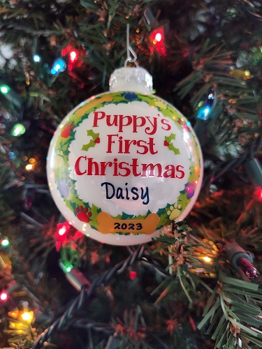 I recently blogged about our family tradition of getting a new Christmas ornament at Bronner’s. We had yet to go this year, but someone (maybe someone who read my blog) did the work for us. We received a Bronner’s box in the mail and the message inside said, “It looks like Daisy needs an ornament for that tree of yours!”